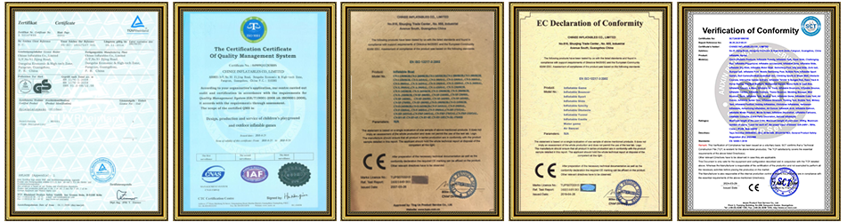 We take the safety requirements and regulations of the inflatable entertainment industry seriously. Regarding environmental protection, we pay great attention to vinyl and its chemical components; therefore, we only use lead-free materials that meet the safety standards of Europe and other countries. Our digital printing inks comply with SGS testing and printing industry standards.Vision